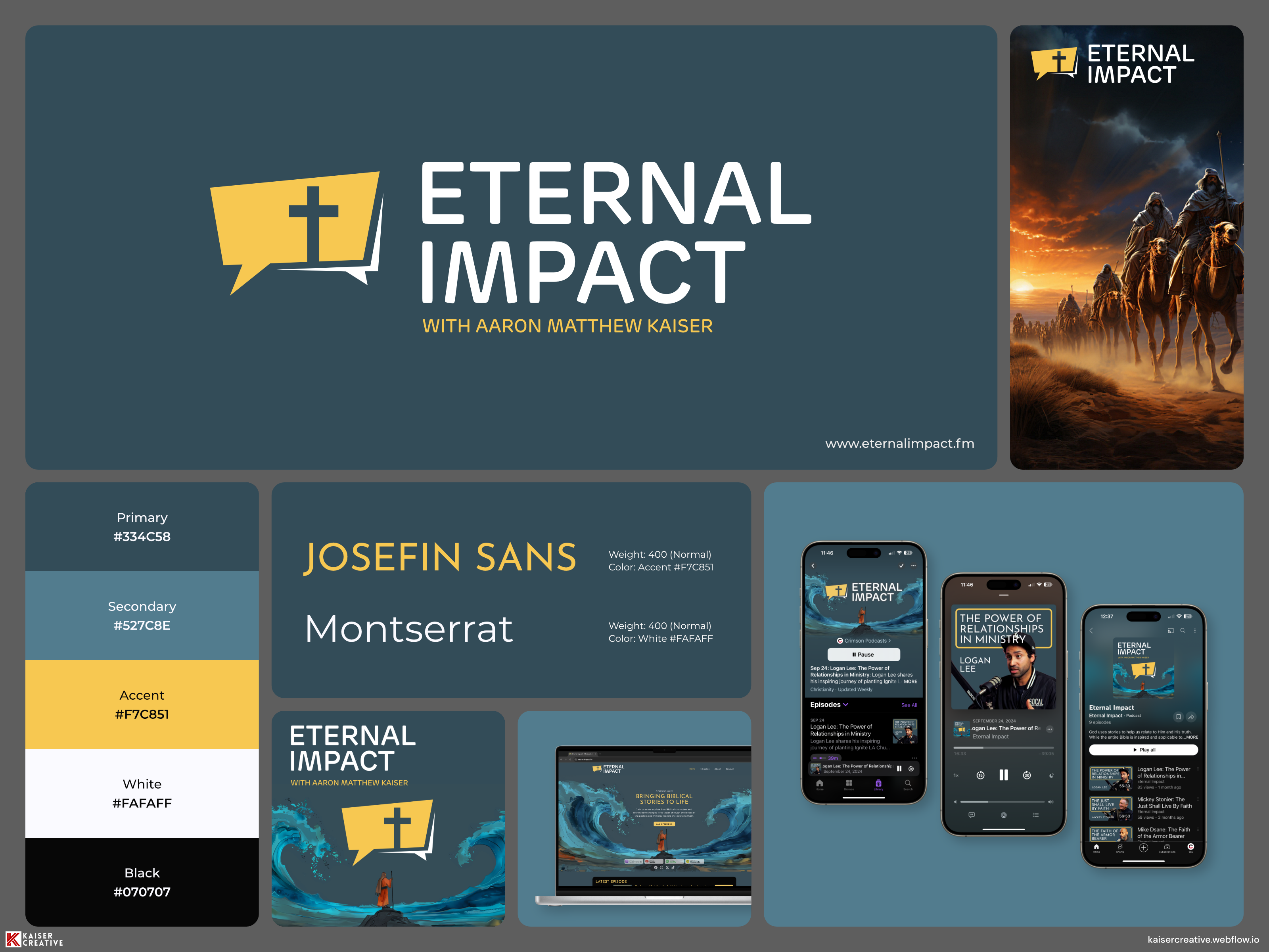 Eternal Impact is a video podcast hosted by Aaron Matthew Kaiser and produced under Crimson Narrative, built around conversations with pastors and ministry leaders about the biblical characters and stories that have shaped their faith. The engagement required building the brand infrastructure that the show runs on.